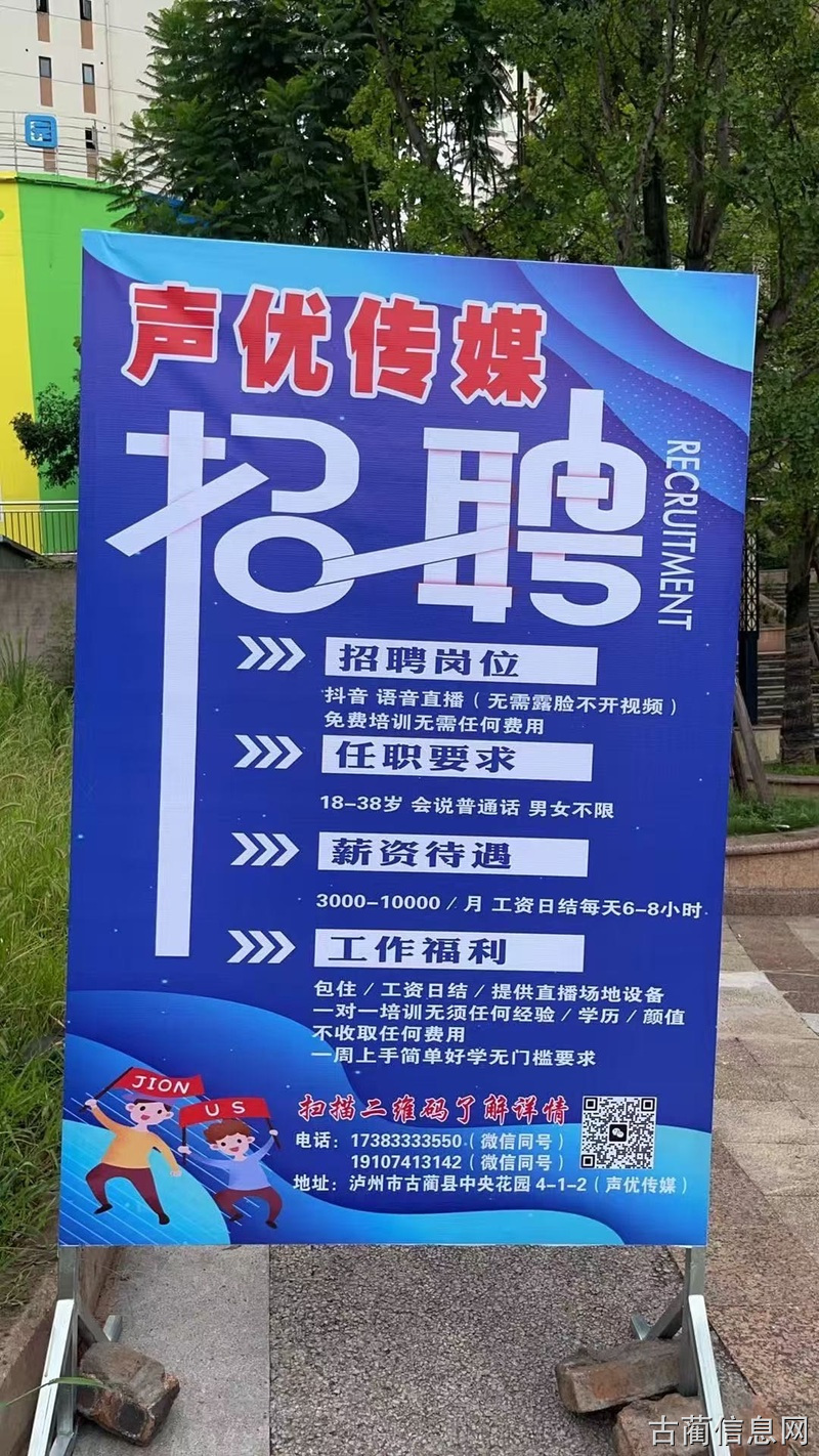 泸州古蔺中央花园 招聘不露脸语音主播 包住